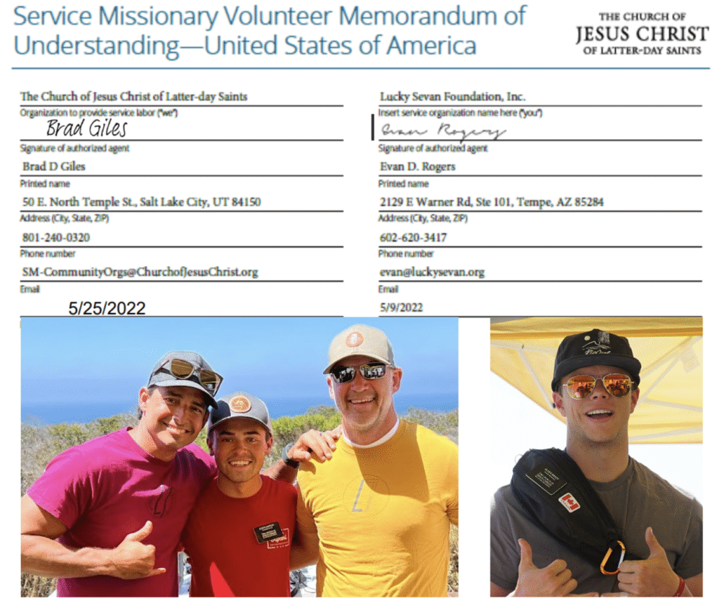 On May 25, 2022, Elder Brad Giles officially approved a partnership allowing Service Missionaries of The Church of Jesus Christ of Latter-day Saints to serve at Lucky Sevan Retreats. We are grateful for this meaningful endorsement and are proud to support the service efforts of these missionaries in their unique mission assignments.